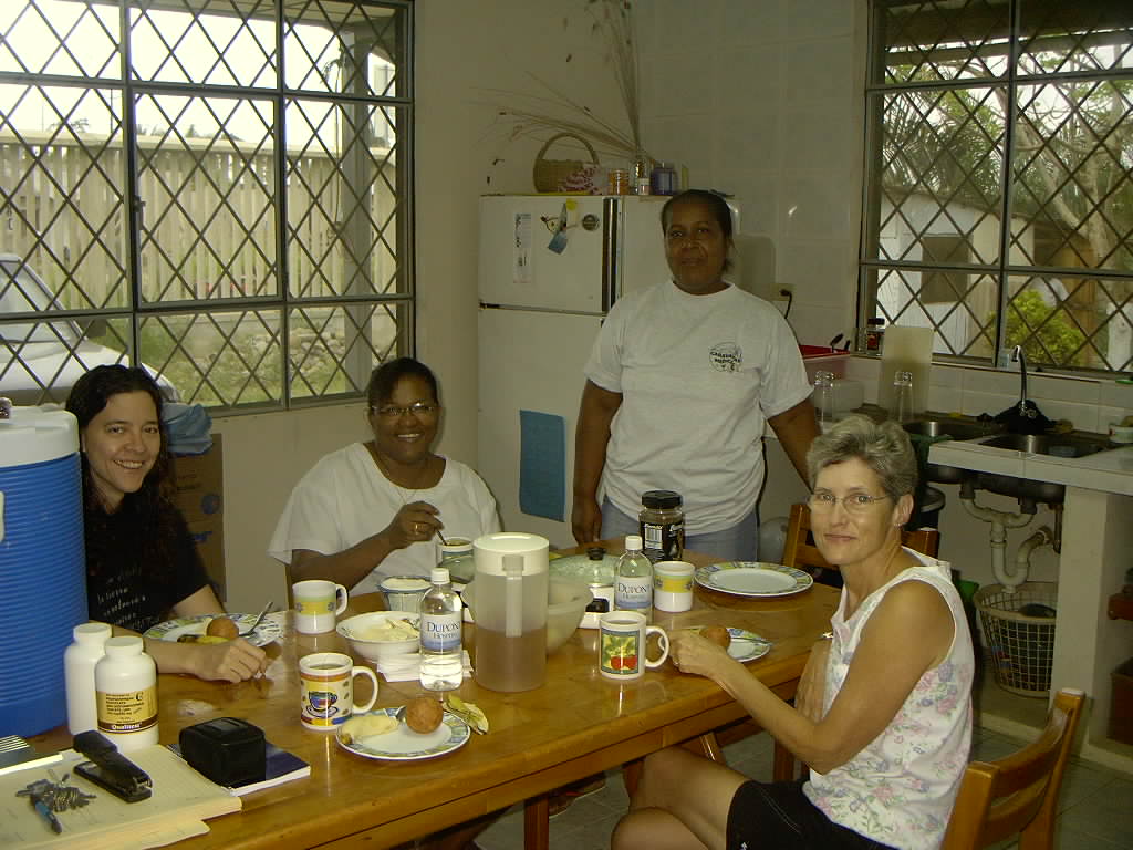 For lunch we were served coconut crusted fish. Now this fish was covered in grease and had this mixture of stuff on it that supposedly the coconut. The fish was prepared whole…that is the head, tail, fins, etc were still there…all covered with the coconut batter. You had to pick through the bones and other interesting items to eat the flesh of the fish. Of course, this was served with rice. One thing they do here is blend up fruit for our drinks. We had cantelope juice this morning. It is cantelope that is run through a blender. Actually, it tasted fairly good. It is much better eaten as a cantelope as far as we are concerned. It doesn’t taste nearly as good as homegrown Indiana cantelope! The biggest meals are breakfast and lunch with our dinner usually being some sort of soup with, of course, lots of rice. Tonight, we had a cheese soup, which was mainly broth with chunks of cheese floating in it. The cheese has a different flavor and it squeaks on your teeth when you eat it. I have never eaten squeaky cheese before until now. Thank heavens for rice! At least we will make it through some of the meals! J