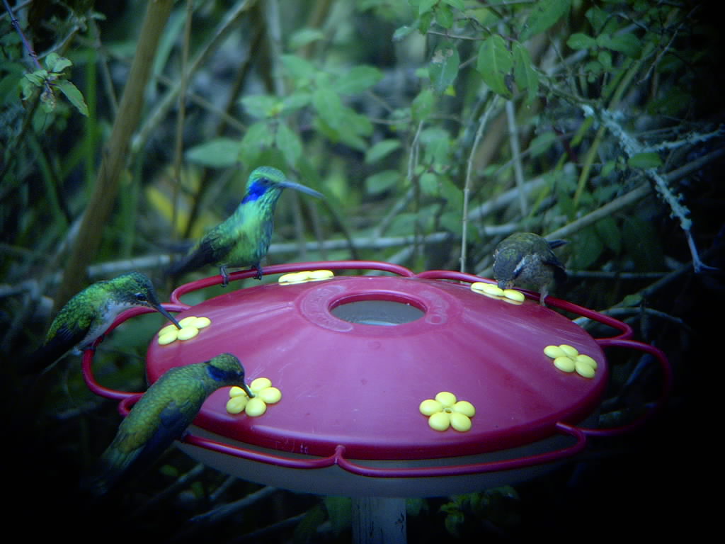 We are up and have eaten breakfast. Here at the guest house the kitchen is totally stocked and we are free to do whatever we want for our meals. We made some scrambled eggs and had some peach yogurt and some hot tea. Breakfast was good. In a couple hours we will head over to the hospital to meet up with Jane and then head to the cloud forest to see the hummers. If you go on the Internet and look up Tony Nunnery, you will see multiple pages involved with his work. You might find a picture of his home where we will be going. We will be going to his home and sit on the back porch and watch the hummers at the feeders. The last time we were here his wife, Barbara, asked me all about pregnancy and whether she would be at risk trying to conceive living so far out away from civilization. They are very nice people and enjoy opening up their home to any visitor.