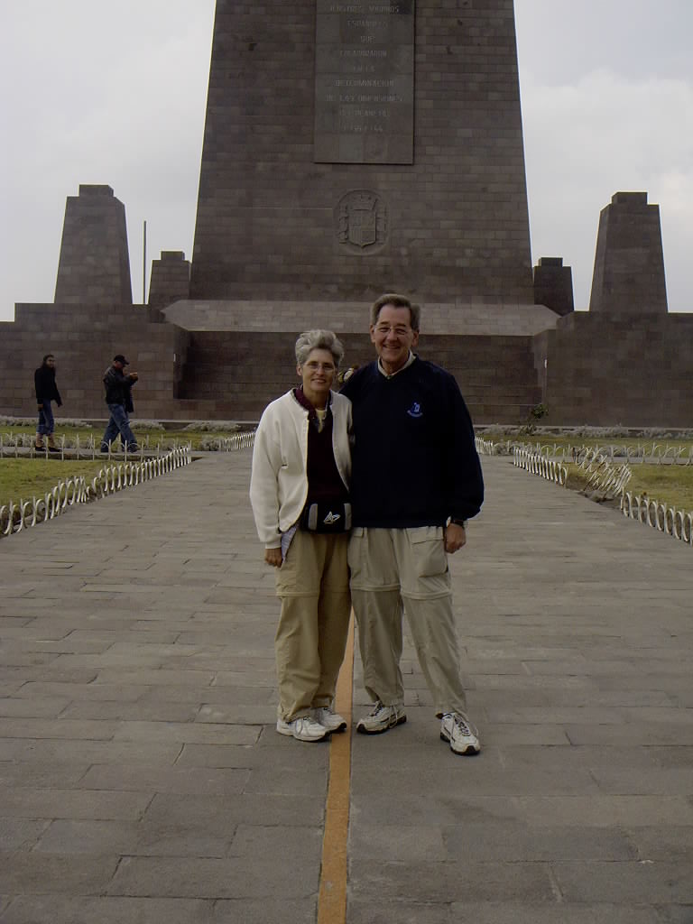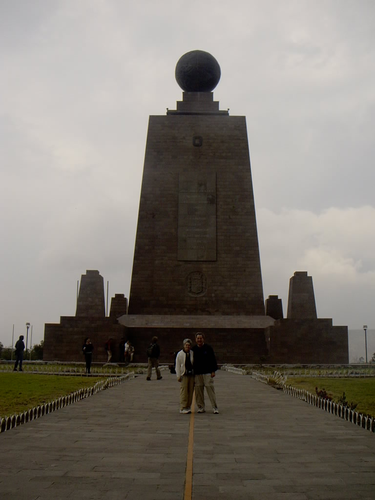 On the way back to Quito we stopped at the middle of the world and stood astride the red line that marks the equator. Got a picture of Phyl and I standing on each side of the line, one on the northern hemisphere and the other on the southern hemisphere. Ben, did you find the red line? Grandma and I were there and we took a picture just for you!
