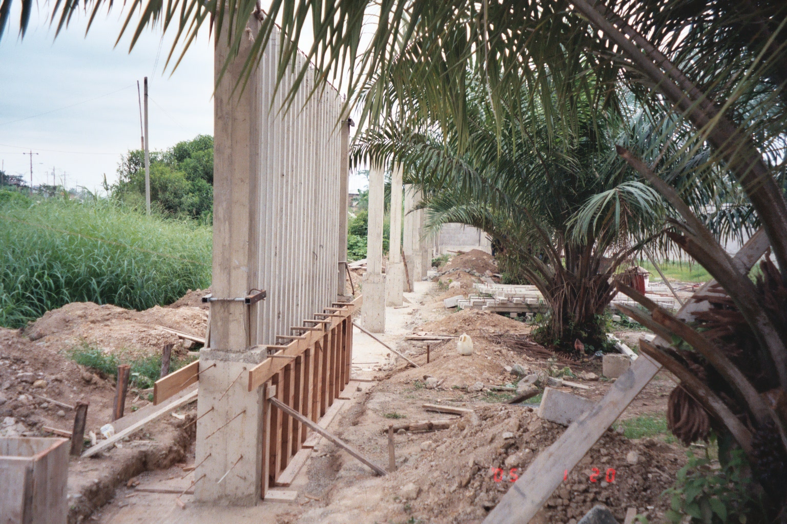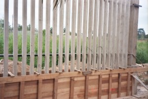7:20 AM. I slept really good last night, almost developed bed sores from not turning! What a great feeling to be rested. That was countered by the long inhale that occurred when I stepped into the shower. The construction crew is already at work on the wall. Since last June when nothing was even started, there has been much progress. One side is completely done and the other side is well over half. The front wall will be open with 4 to 5 inch concrete beams (vertical) like a fence. There will be two gates – one for people and one for cars. This will really help on keeping the chaos under some control. The back wall is not up yet. Already we can see the wall will act as a sound barrier. We don’t hear the pigs, dogs and chickens as much. Jane has had plans to build this security wall around her property to help preserve her property from squatters moving in and also to provide much better security for her and the team. It is good to see this progress ongoing.