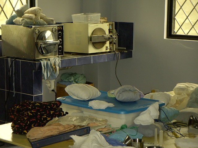 The sterilization room where all the supplies are wrapped and sterilized and then stored for use in the OR.