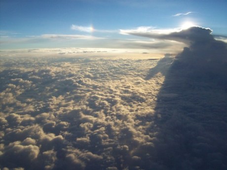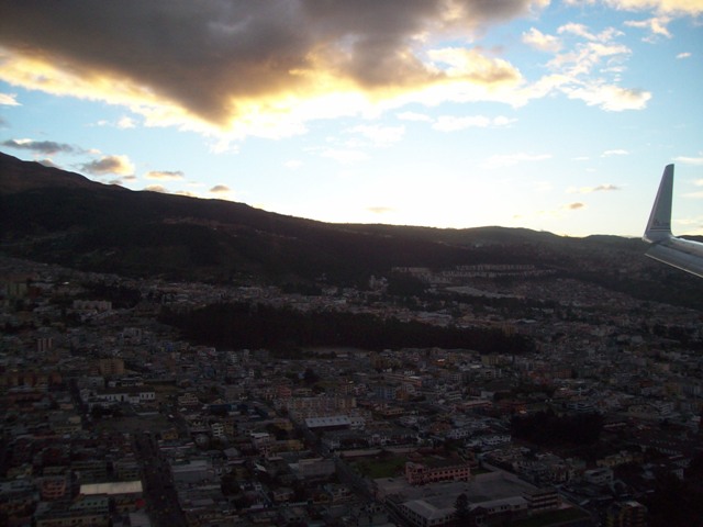 Coming close to Quito. Some of the mountains are visible in the lower left corner.