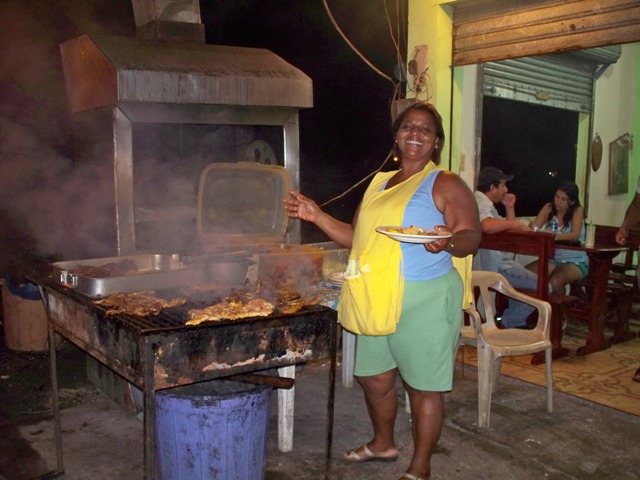 We all went out to a small restaurant, typical of San Lorenzo, where we had grilled pork chop or grilled chicken breast for dinner. Those were the only two choices. The restaurant had 6 tables and you walked through the grilling area to get in. The grill is out on the sidewalk and the smoke was thick. Jody took some pictures of our crew and I borrowed them to post in the blog.