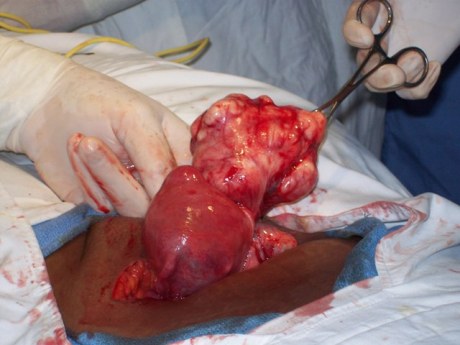 What follows is a picture of the hydrocoele from the older gentleman and some pictures of the myomectomy procedure.