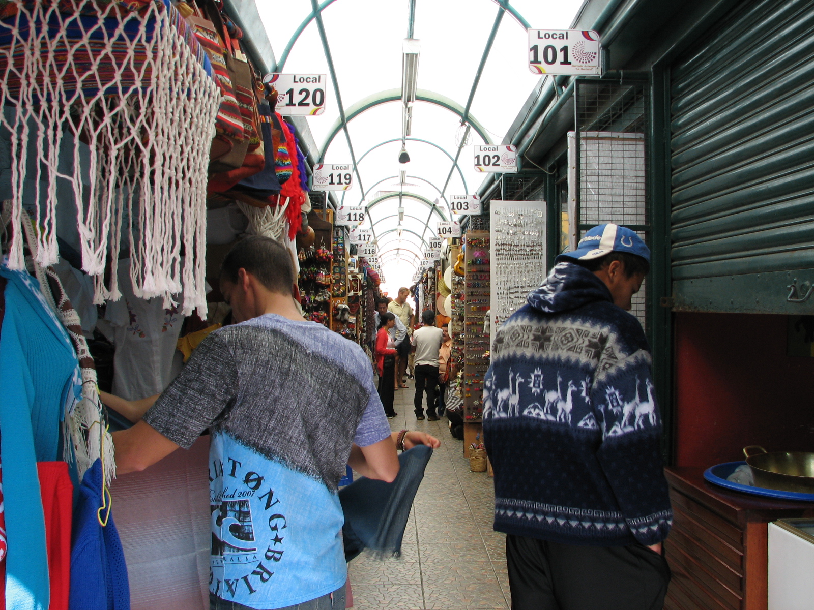 Jane arrived by 9:30 and Damarys was with her. Damarys was driving and she took us to the market in central Quito. This is another Otavalo. There were rows and rows of vendors with about 4 feet of aisle space for people to go both directions. We were being bumped constantly as we stood and looked or even talked with one of the vendors. There was so much stuff! We walked the market until about noon then Damarys drove us to a large mall where we could park. The tour of Quito bus starts there at the mall. So we went into the mall to the food court and had some food and then went down to the ticket counter for the tour and got our tickets.
