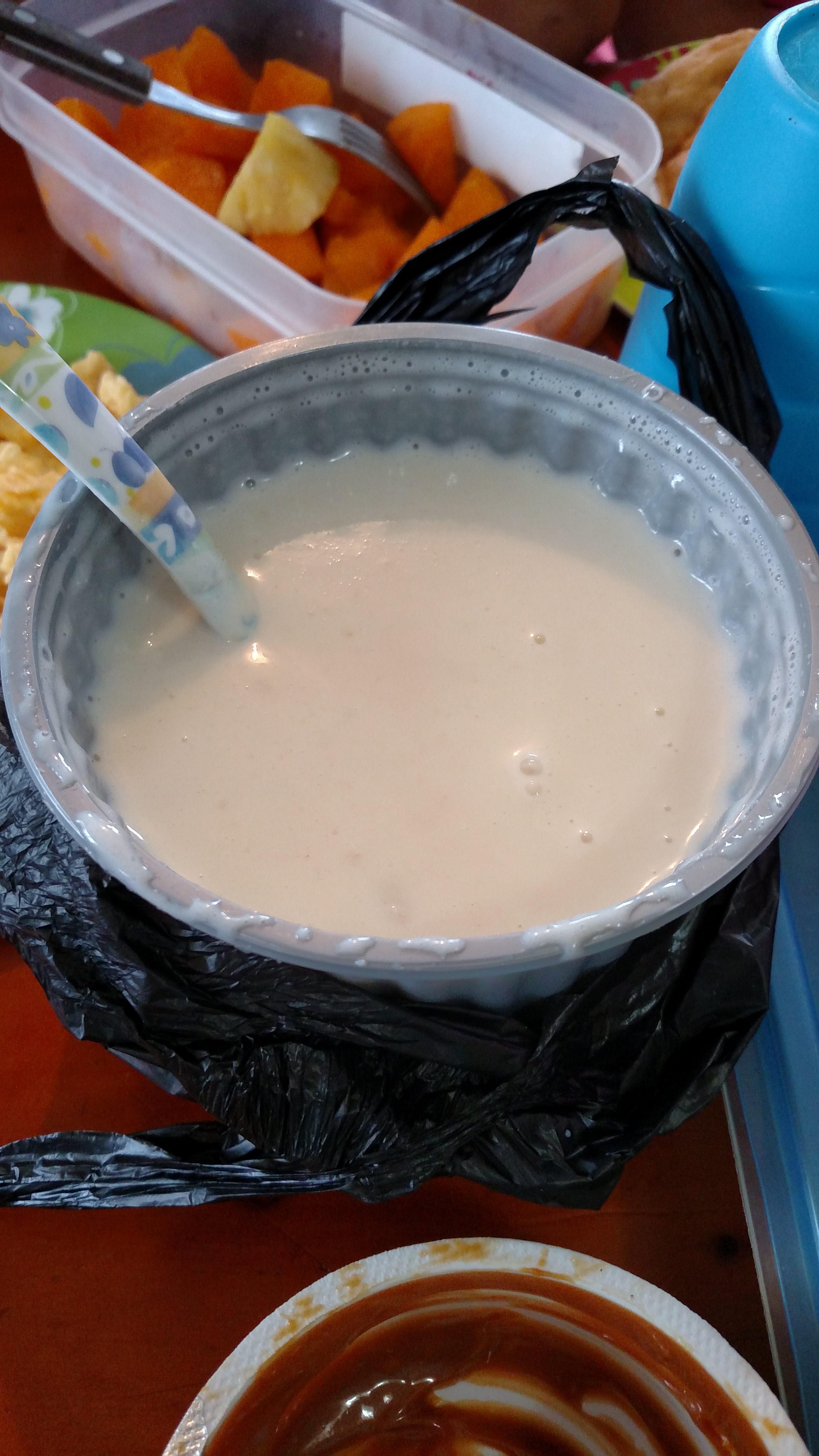 After breakfast Jane brought us some morocho, a warm thick milky drink made from a type of corn. It is sweet with a flavor close to tapioca but distinct and different as well. Along with this is a fried tortilla, much like an elephant ear without sugar. The combination is very tasty and gave a perfect end to our breakfast.