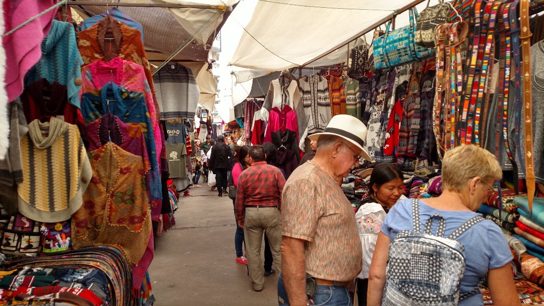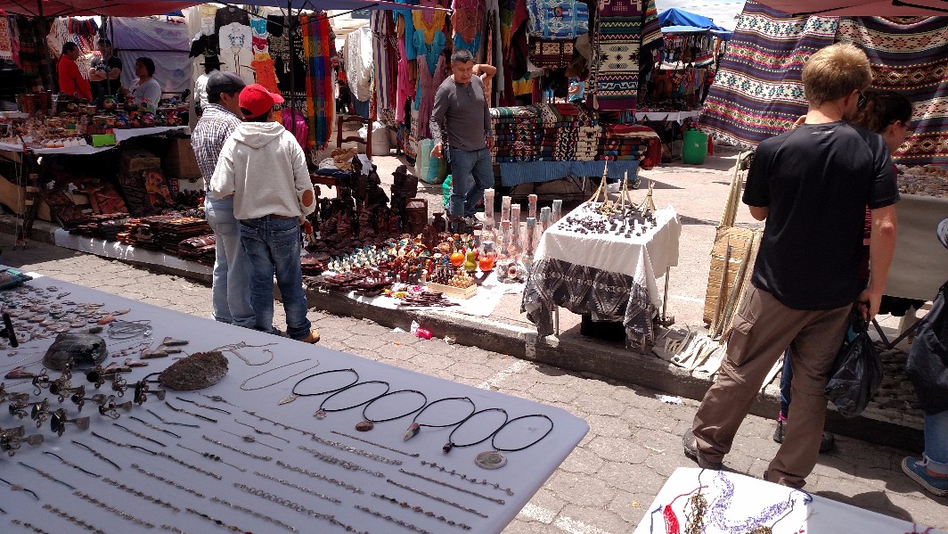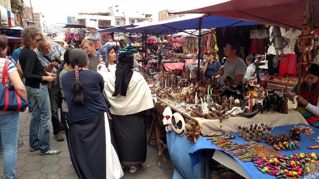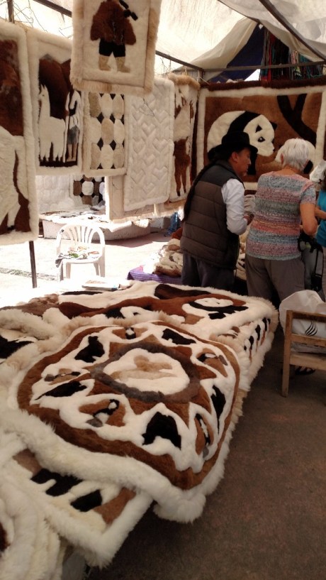 We arrived at the market and it was very busy with lots of people shopping. This market is more of an artisan market where the local artisans have all their goods on display. There are weaving, clothing, baggage, purses, scarves, throws, blankets, and all sorts of carvings in wood, jade, and vegetable ivory. The vegetable ivory is from a large seed from a tree and the matrix of the seed is white and looks and feels like ivory. We spent the afternoon looking and shopping. Then about 5 pm we started for Quito.
