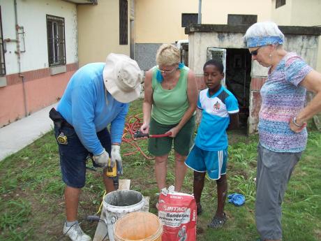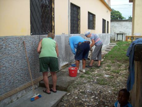 Howard, Tricia and Katie also had a good day and were able to put up a lot of tile. The tile up to the windows makes the building look a lot better as the paint and stucco was falling off on the lower section. At the rate they are going the tile project of that section of the building should be all completed within this next week. Jane is very happy.