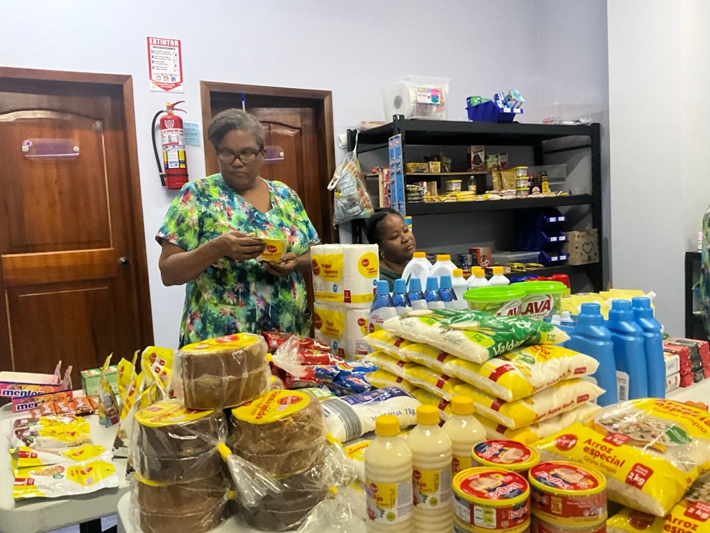 Jane was telling me about the additional staff and the effort she has made to pay them a fair wage that is actually generous. They have been asking for a raise so she started having a “store” for them to purchase needed items for their homes. She buys several things at the grocery and then marks them with deeply discounted prices. She then gives them a $25.00 credit each month and they can then shop at the store using up the $25. They love the idea and the morale has jumped up considerably. Here are a few pictures of the store and the shopping spree that took place this afternoon before the crew went home.