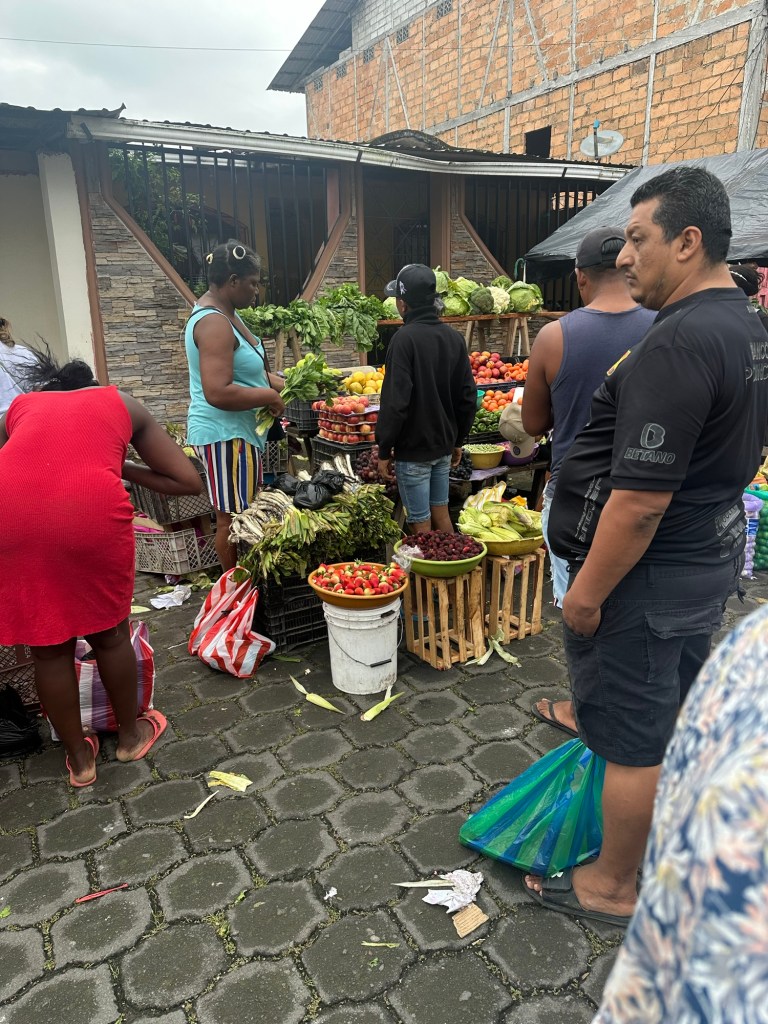 After a good night’s sleep, I felt refreshed and ready to meet the day. Jane, Claudia and I are the only ones here for the weekend. Jane needed to go into town to purchase some food for next week so we planned to go with her and see the local market that is up and running every Saturday. We decided to go to the market around 7 am as Jane said a lot of the vegetables would be sold out by mid morning generally. Plus, she needed to be back at the clinic by 9 to attend the board meeting for her mission. The board consists of all Americans plus one Ecuadorian. They meet virtually and Jane joins in to give updates and answer questions, but she is not a voting member of the board. The meeting would run for about two hours.