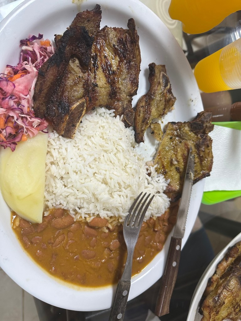 For dinner Jane took us out to eat at a small corner eatery where we have been able to get good meals. They had a main menu of grilled beef, pork, or chicken served with beans, rice, slaw, and a potato. We each got the pork which consisted of two grilled pork chops that were quite tasty. I didn’t eat the entire meal but brought a good part of it home with me for later consumption.