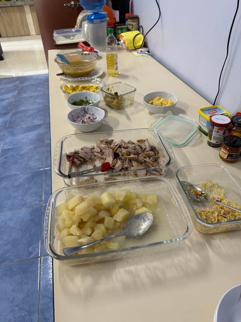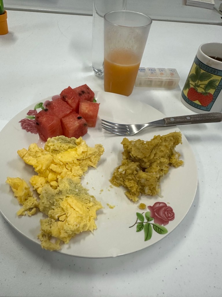 After that appointment, I met up with Claudia in the dining area and we sat and talked about our spouses who both had similar degenerative neurologic diseases leading to their deaths. She went through a similar process of caring for her husband as I did with my wife. Soon it was time for dinner and Loida put together some rice and chicken using up leftovers and added watermelon, mango juice, and lemonade to drink. I must say, they are taking good care of us and feeding us quite well.
